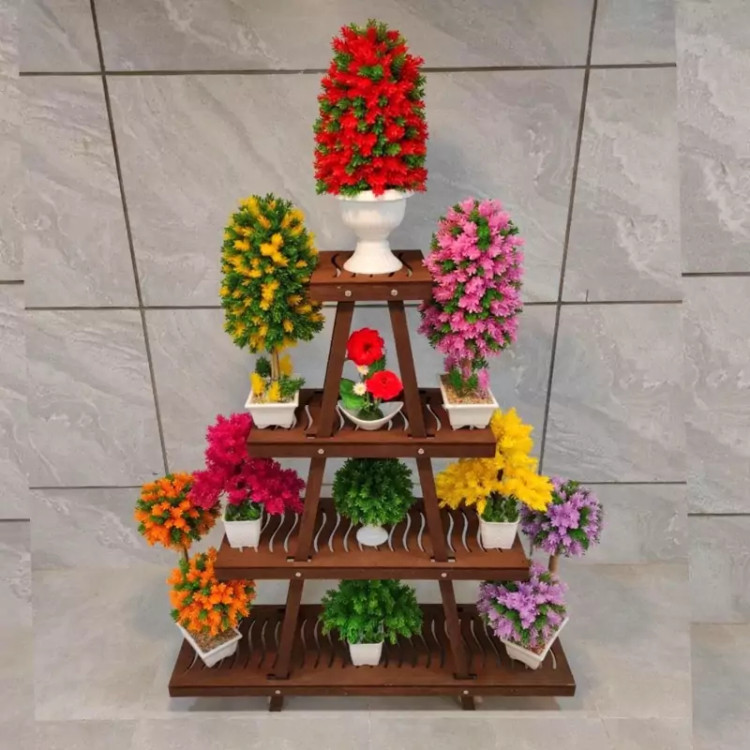 استند گلدان هرمی چهار طبقه رنگ قهوه ای