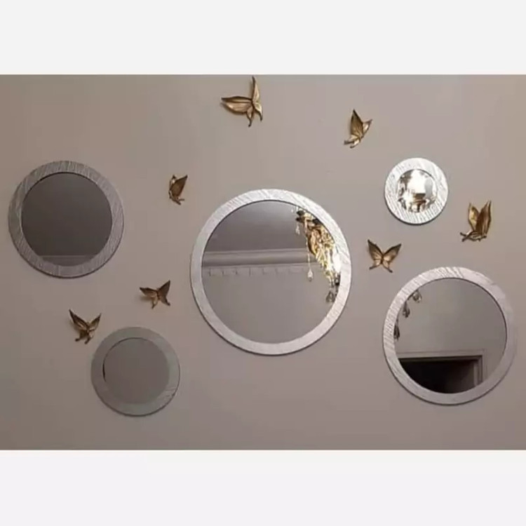آینه پنج تیکه گرد نقره ای