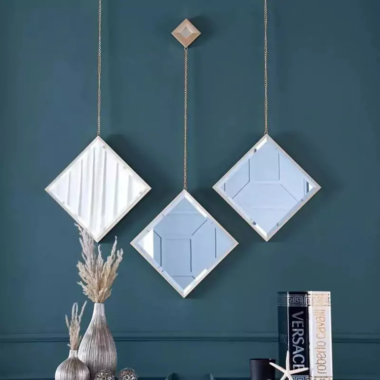✓یک کار دکوراتیو خاص و باکیفیت داریم براتون🤌 که برای هرفضایی مناسبه آینه لوزی زنجیر دار سه تایی در دو رنگ سفید و طلایی