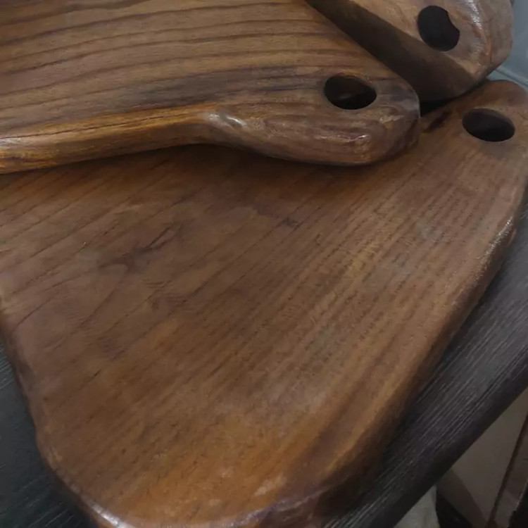 تخته گوشت چوبی چوب گردو کاملا دست ساز به دلیل دست ساز بودن تخته گوشت ها اندازه با هم فرق میکند سایز 35*20*3 محکم و با دوام و کاملا بهداشتی ارسال به سراسر کشور